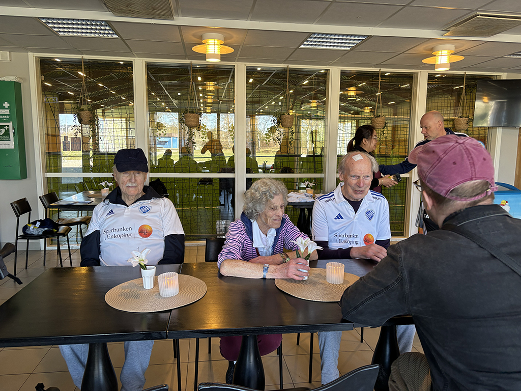 På plats fanns även volontärer från Rotary, personal från deltagarnas boenden, samt anställda från Svenskt Demenscentrum (SDC). Mirjam Brocknäs, som är gerontolog i botten och utvecklingsledare på SDC, har varit med och tagit fram konceptet. Hon menar att gåfotboll är perfekt för deltagare med mild till medelsvår demenssjukdom och drar paralleller till tidigare satsningar hon deltagit i med konst och dans för demenssjuka.