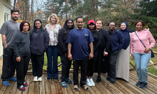 Medarbetarna på Högsätersvägen 16B. Enhetschef Azai Alchasova (nummer fyra från höger) tillsammans med biträdande enhetschef Kauthar Al Zubaidi, arbetsledare Ilhama Aligozalova, stödpedagog Forogh Far Farzaneh samt stödassistenterna Youssef Saado, Kamal Uddin, Anup Roy, Paula Guzman, Amanda Kadhir, Elisabeth Habte, Gifty Nyamesah och Aminata Conteh.